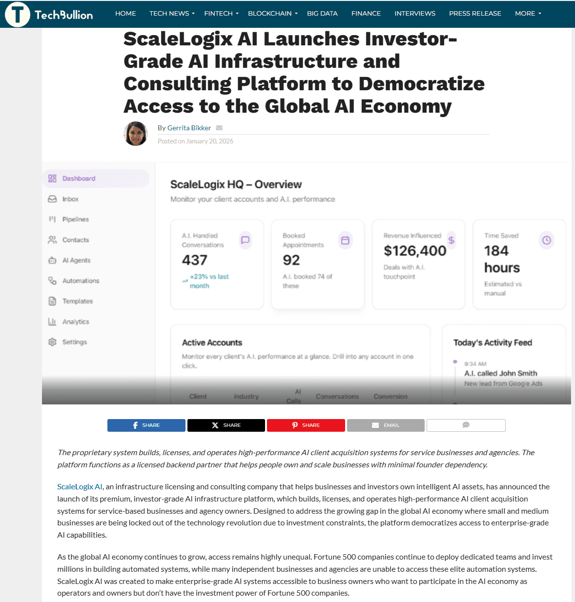 Disclaimer: ScaleLogix A.I is a consulting and infrastructure licensing company. We do not offer business opportunities, franchises, or passive investments. Nothing in our materials, websites, decks, or client conversations should be interpreted as a guarantee of income, success, or results. All earnings examples shown, including screenshots, testimonials, or case studies, are illustrative only. They reflect the experience of individual clients who may have had prior sales skills, existing networks, or industry expertise. Your results will vary and depend on your niche, offer quality, marketing execution, client demand, and personal effort. Clients are responsible for building and operating their business, managing cash flow, handling legal compliance, and implementing sales and service strategies. Our A.I. systems assist with outreach and internal workflows but are not autonomous businesses. They require human oversight and offer no guarantee of conversion or revenue. ScaleLogix provides licensing access to infrastructure (e.g., CRM subaccounts, AI agents, operations frameworks) for a limited term. These assets remain the intellectual property of ScaleLogix unless a buyout is executed under contract. Any references to lead delivery or client acquisition are part of optional incubator programs, separate from the base license, and are subject to qualification and availability.By working with ScaleLogix, you acknowledge that you are launching or scaling your own independent business and that no earnings claims, investment advice, or legal guarantees are being made. All clients should consult with their own attorney, accountant, or advisor before entering into any agreement. ScaleLogix operates under the jurisdiction of Florida, USA. Terms are governed by our signed Infrastructure Licensing Agreement and applicable law.